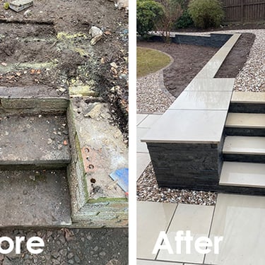 Porcelain and Indian sandstone patios designed and installed to transform your outdoor space with a premium finish.